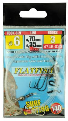 Indeks: Spro 4746-021 Zestaw plażowy Flatfish Allround, 3HK, rozmiar 8 Bardzo klasyczny i sprawdzony zestaw do połowu z plaży (fląder, dorszy, węgorzy). Wyposażony jest w 3 haki na mocnej żyłce oraz krętliki, dzięki którym zestawy swobodnie obracają się wokół żyłki głównej....